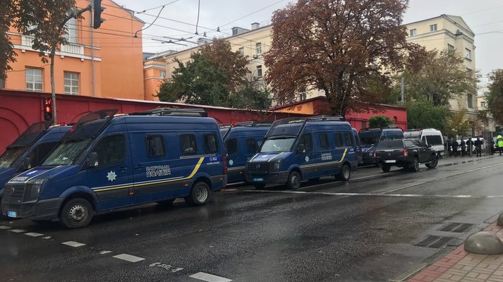 Також у районі проведення ходи перебуває велика кількість поліцейських автівок та автозаків. Організатори акції також облаштували танцювальну платформу.