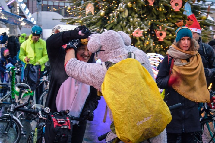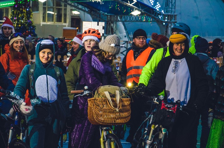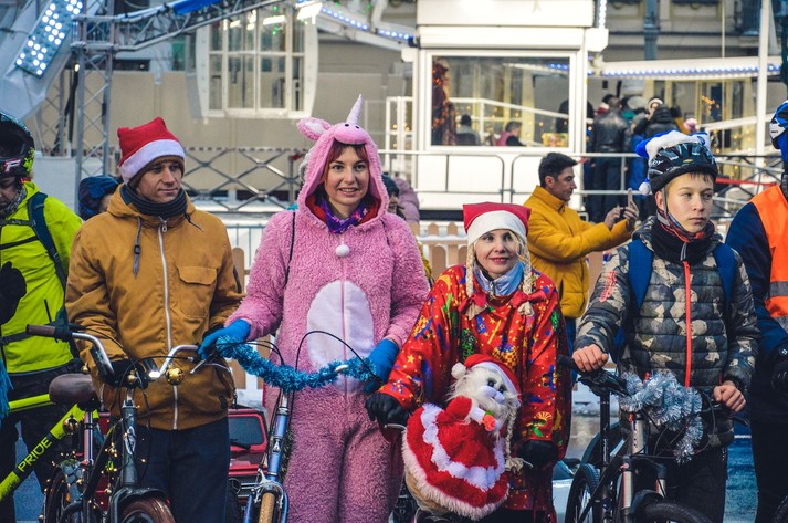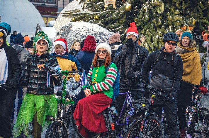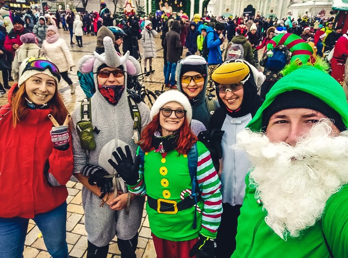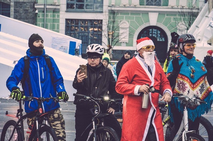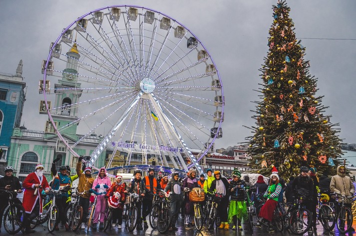 У неділю, 29 грудня, у Києві відбувся перший святковий велопарад від ялинки до ялинки #bike2holidays. Велопарад стартував на Софійській площі, а завершився на Контрактовій.