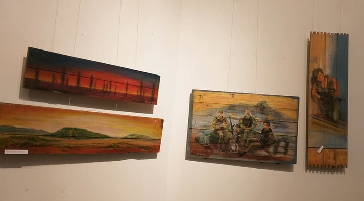 На виставці буде представлено близько 200 різножанрових авторських робіт: художні полотна, вишивка бісером, хрестиком картин та ікон, вироби з дерева, іграшки, ляльки-ренборни, художньо розписані ящики й гільзи з-під снарядів, фотографії з війни, портрети українських героїв, воєнні артефакти (уламками мін та снарядів), а також друковані твори.