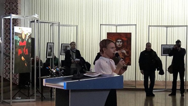 В Українському домі у Києві відкрилась фовиставка у пам'ять про загиблого ветерана АТО Аміну Окуєву. Виставку відкрила і вела мати Окуєвої.