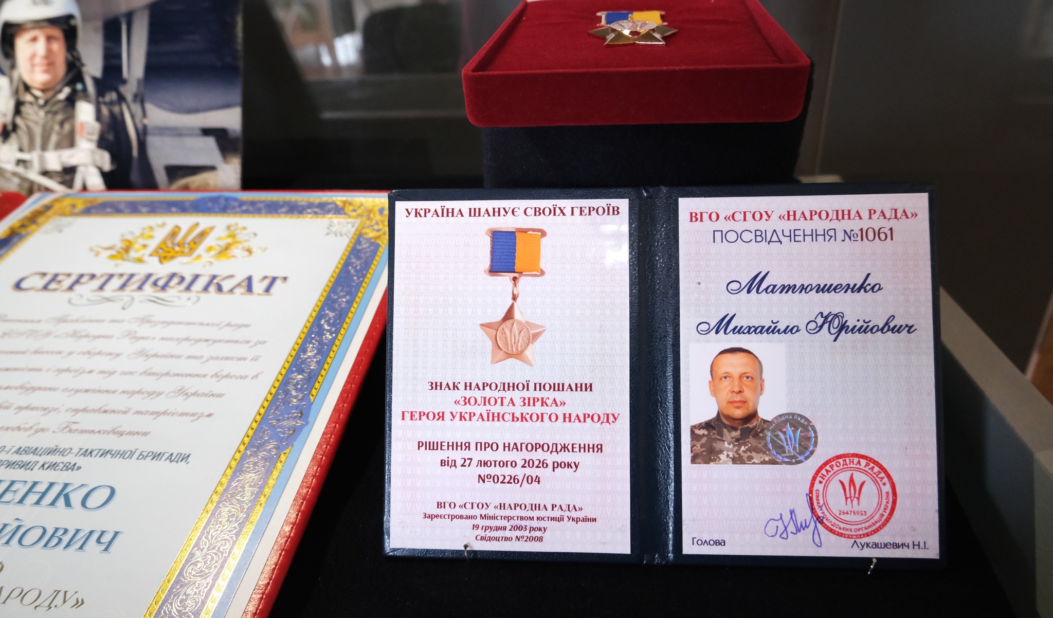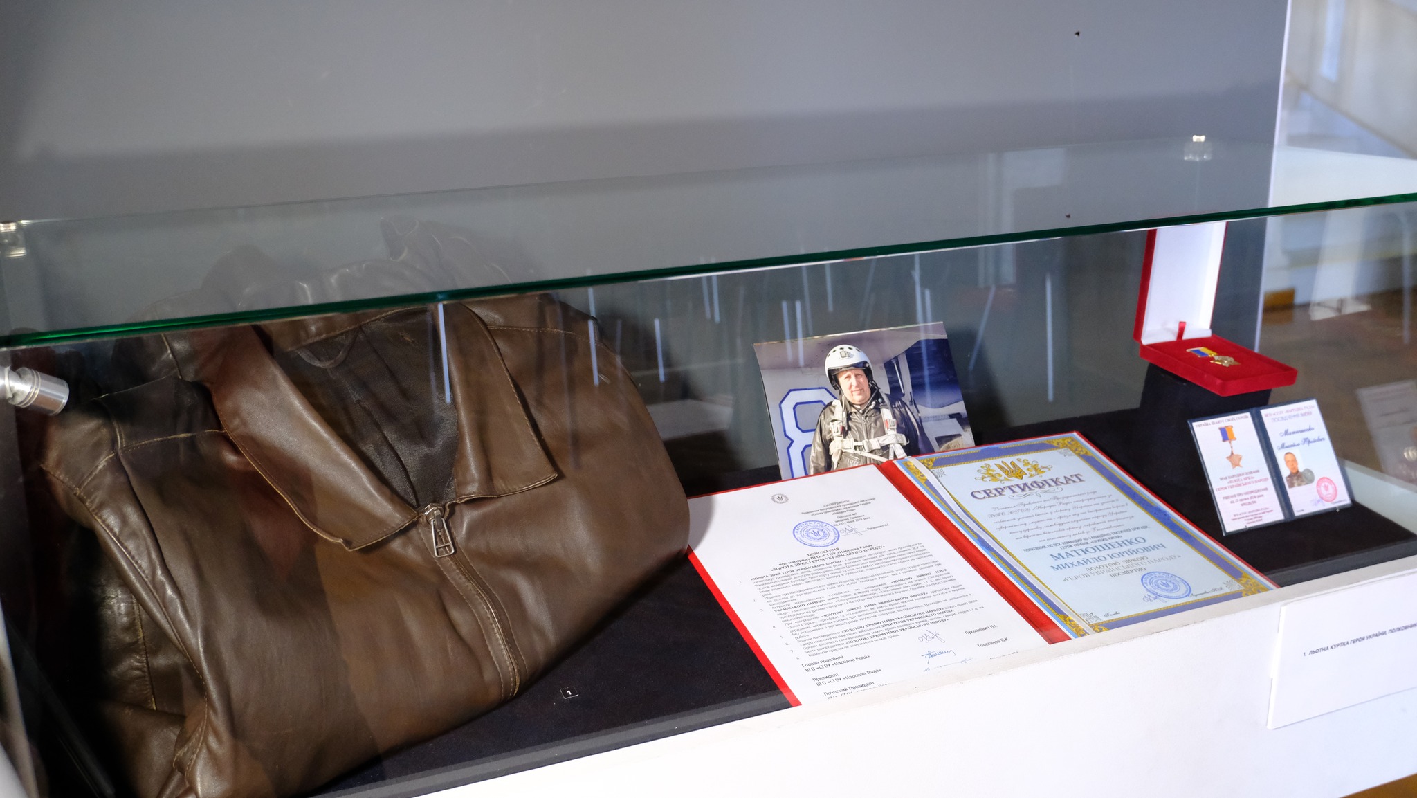 Основу експозиції склали особисті речі аса, які передала музею його дружина Лариса Матюшенко. Ці предмети розповідають про шлях професіонала, який став наставником для багатьох молодих пілотів і з перших днів повномасштабного вторгнення захищав небо над столицею.