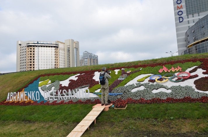 У Києві сьогодні, 7 травня, урочисто відкрили квіткову клумбу «Олімпійське золото» на честь чемпіона з фристайлу 23-х Зимових Олімпійських Ігор в Південній Кореї -2018 року Олександра Абраменка.