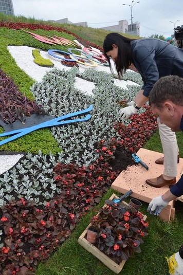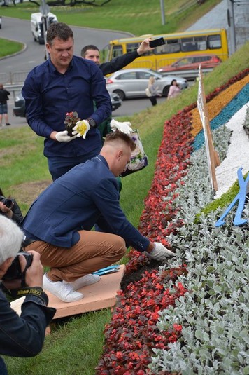 Як повідомляє КО «Київзеленбуд», символічно Абраменко зробив завершальний акорд у висадженні панно, власними руками висадивши квітку бегонії.