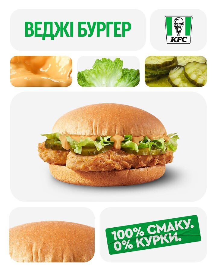 У київському торгово-розважальному центрі Blockbuster Mall відкрився перший в Україні і Східній Європі ресторан KFC, де меню повністю складається з рослинних альтернатив м’яса. Про це повідомляє «Главком».