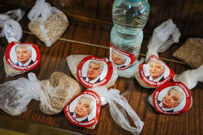 Більшість експонатів ілюструють «гречкосійство» – агітацію з роздаванням виборцям подарунків, квитків, наданням послуг тощо, що може вплинути на волевиявлення виборців. Через такі приклади ми закликаємо відвідувачів не толерувати цю ганебну практику, оскільки «гречкосій», якщо прийде до влади, обов’язково поверне витрачені на виборців кошти з кишені самих виборців.