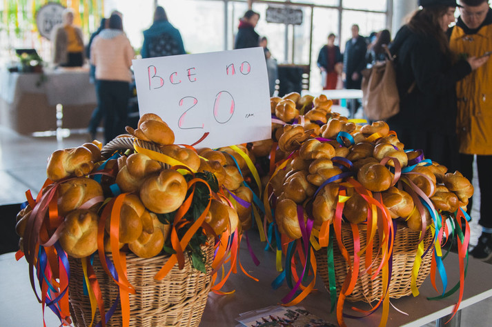 Цього разу на барахолці дуже багато автентичних українських речей. На майстер-класах люди розписують яйця, перетворюючи їх в «писанки», готують смачні млинці і їдять випічку. Більшість учасників одягнені в національний одяг.