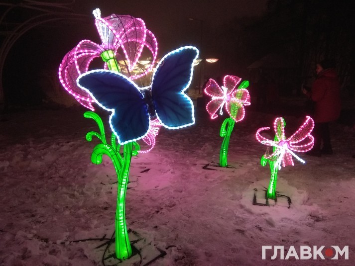 Як повідомляє кореспондент «Главкома», до відкриття незвичайного світлового фестивалю біля кас Співочого поля зібралося близько сотні бажаючих подивитися гігантські інсталяції.