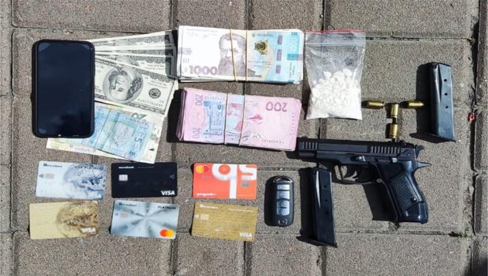 За результатами контролю за вчиненням злочину у формі оперативних закупок, а також проведених обшуків за місцем проживання та в автомобілі затриманого вилучено близько 500 г кокаїну, засоби для фасування наркотиків, грошові кошти у сумі близько 200 тис. грн, пристрій для відстрілу гумових куль «Форт 12Р», мобільні телефони, сім-картки та банківські картки.