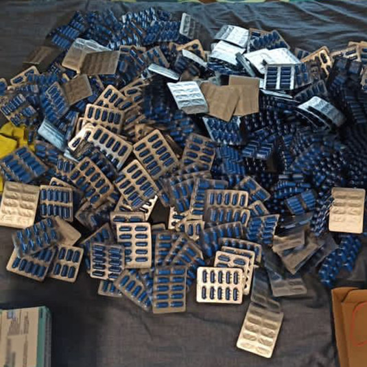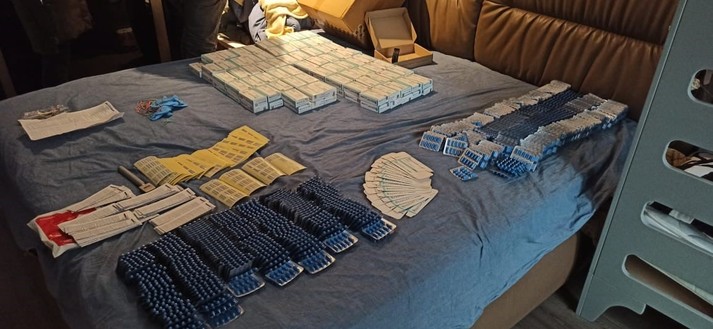 Під час проведення 11 санкціонованих обшуків на території Києва та Київської області вилучено майже 200 тис. підроблених пігулок, виробниче устаткування, фасувальний матеріал для готової продукції, чорнові записи та інші речові докази.
