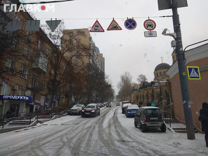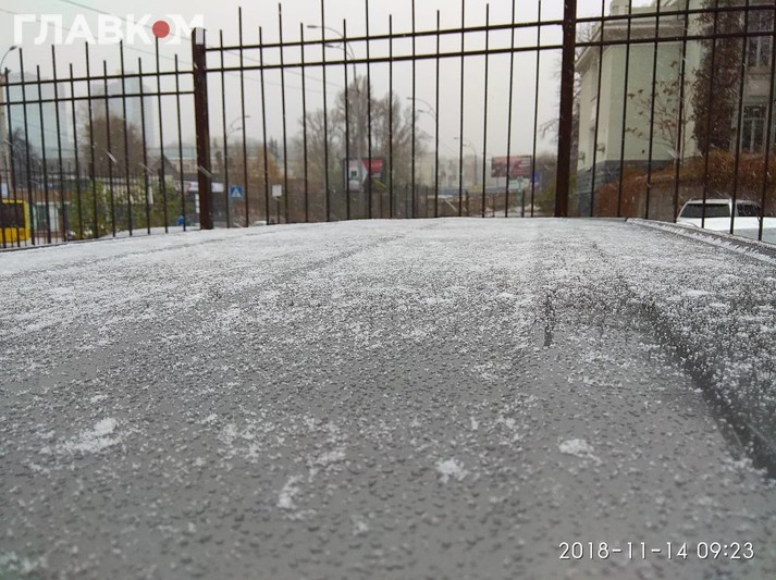 Як повідомляє кореспондент «Главкома», легенький сніг вкрив землю, дороги, будинки і машини.