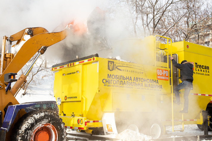«Київ першим в Україні закупив такі сучасні установки. Снігоплавильна машина «з’їдає» до 60 тонн снігу за годину. Після інтенсивних снігопадів, коли важливим стає питання вивезення снігу з вулиць і доріг, такі мобільні установки є суттєвою допомогою», – зазначив генеральний директор «Київавтодору» Олександр Густєлєв.