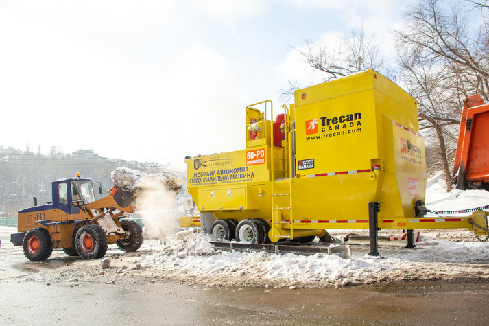 У Києві провели тестовий запуск першої в Україні мобільної снігоплавильної установки. Як нагадали у комунальній корпорації «Київавтодор», дві установки TRECAN 60-PD виробництва Канади столиця закупила у грудні 2018 року.