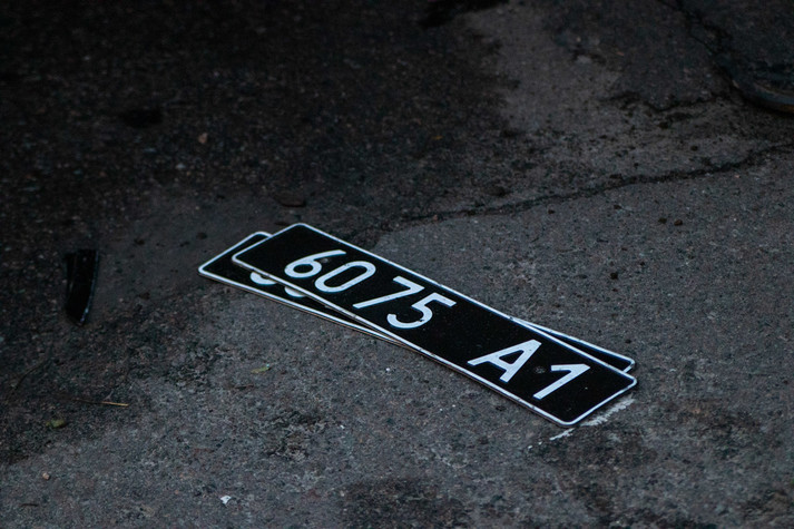 Відразу після зіткнення з Nissan вискочили двоє людей і зникли з місця аварії. Крім того, чоловіки, які перебували в салоні позашляховика, скрутили з машини військові номери і спробували заховати їх у кущах.