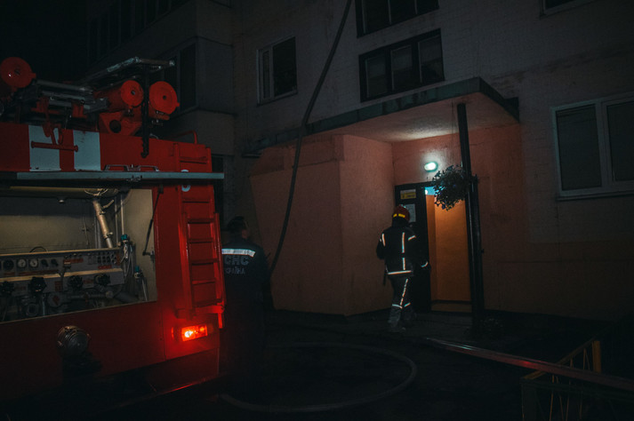 По прибуттю пожежних на місце, було встановлено, що горить кабіна ліфта на восьмому поверсі 9-поверхового будинку. У зв'язку з задимленням співробітники поліції попросили всіх мешканців під'їзду вийти на вулицю.