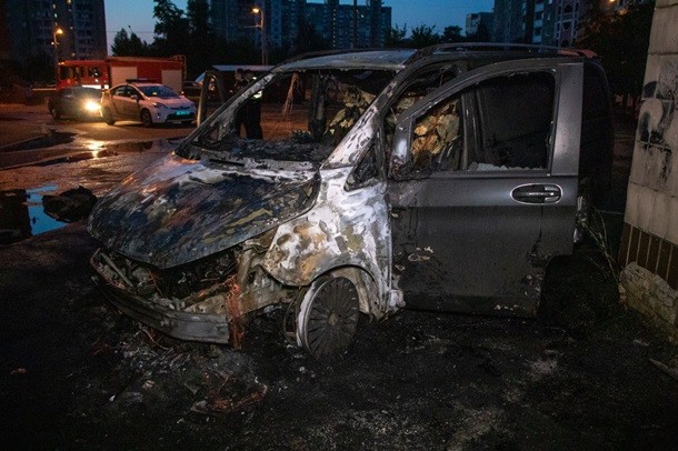 У ніч на понеділок, 12 липня, в Солом'янському районі Києва загорівся мінівен Mercedes, пожежники підозрюють підпал, повідомляє Информатор.