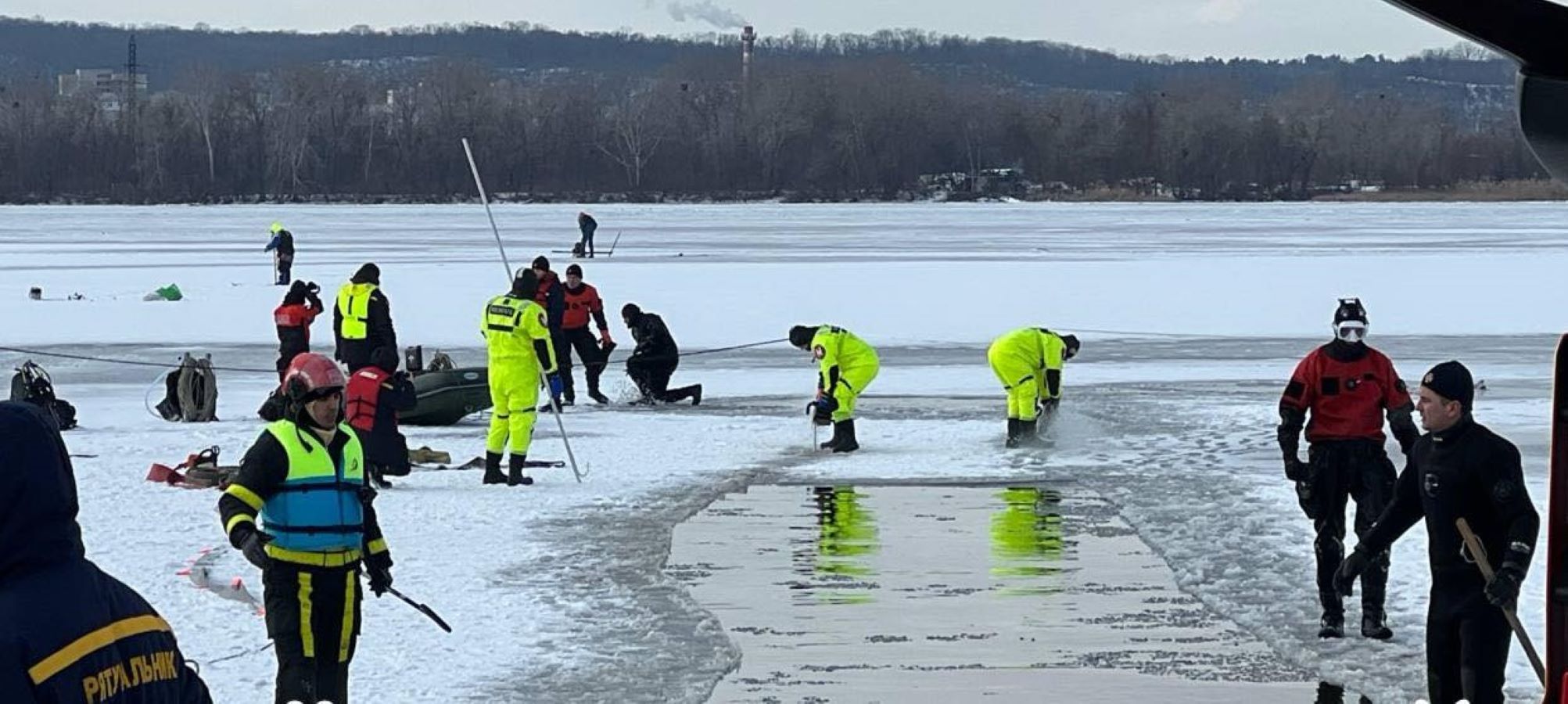 «Співробітники ДСНС Києва: ріжуть лід, качають «подушки» і готують водолазів. Схоже, авто сьогодні таки дістануть», – йдеться у повідомленні.