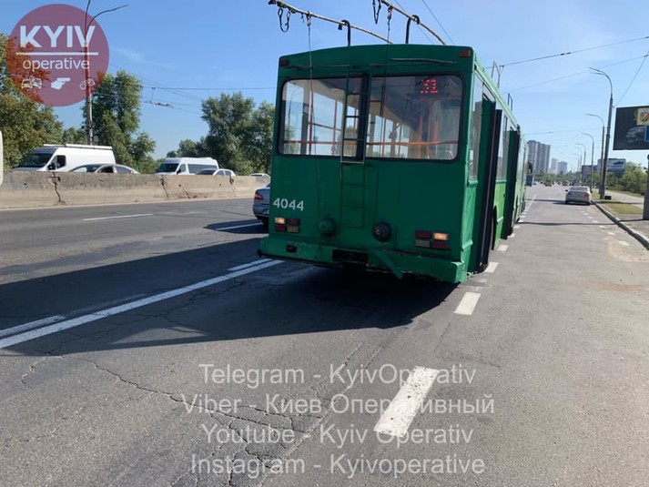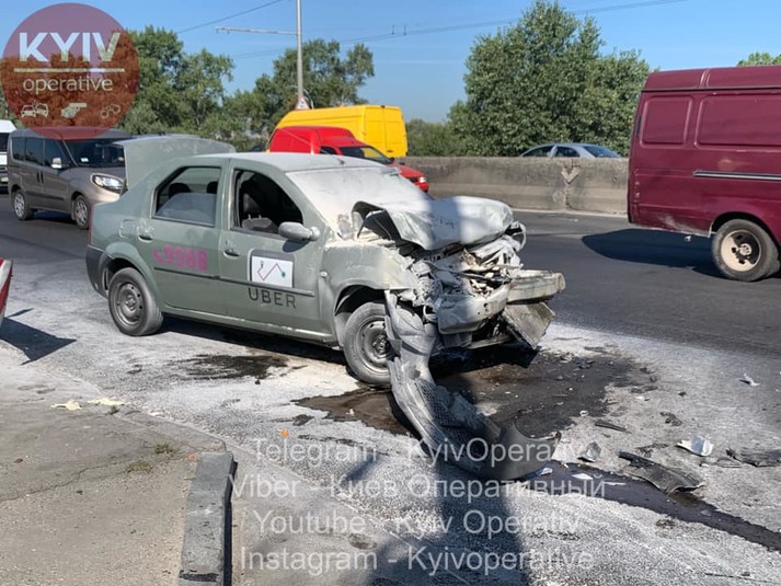 Сьогодні, 29 серпня, за Північним мостом у напрямку Троєщини сталася серйозна ДТП за участю автомобіля Renault служби таксі Uber і тролейбуса №31.