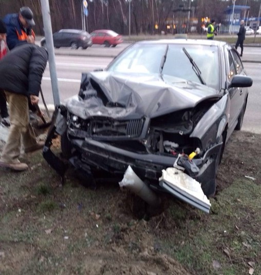 «Skoda Octavia вилетіла на перехрестя, рухаючись у бік Борисполя, та врізалась у Volkswagen. Як бачимо, сталося це в момент, коли автівки з боку Бортничів уже розпочали рух. Volkswagen від удару розвернуло, Skoda проїхала далі та знесла світлофорний стовп. При цьому її пасажиром була дворічна дитина», - йдеться в повідомленні дорожників.