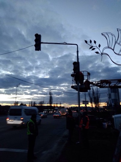 Дорожники демонтували пошкоджені об’єкти, встановили тимчасову опору зі світлофорами та підключили їх до Автоматизованої системи керування дорожнім рухом (АСКДР).
