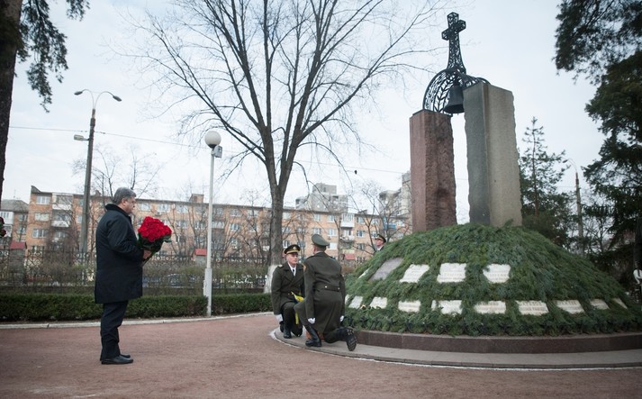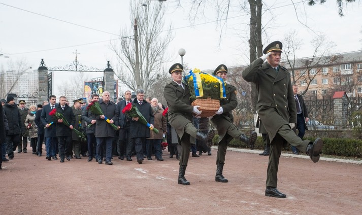 Сьогодні, 14 грудня, з нагоди Дня вшанування учасників ліквідації наслідків аварії на Чорнобильській АЕС у столиці відбулося покладання квітів до пам’ятного знаку «Воїнам Чорнобиля» та Меморіального кургану «Героїв Чорнобиля» за участю президента України Петра Порошенка