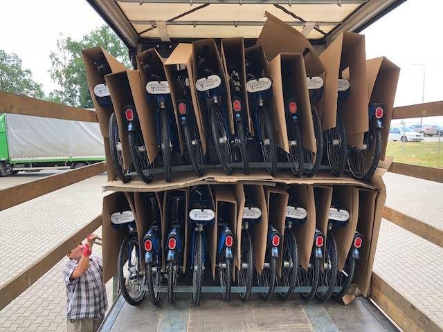 Перші прокатні велосипеди спеціальної конструкції прибули до Києва з Німеччини наприкінці липня.