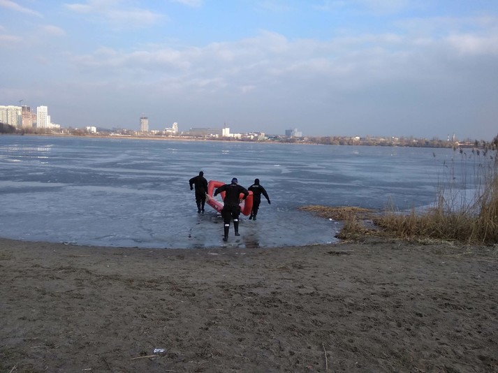 До місця виклику було направлено водолазно-рятувальне відділення ГУ ДСНС України у Києві. Як виявилось, чоловік провалився під лід. Рятувальники завдяки човна та водолазного спорядження його врятували.