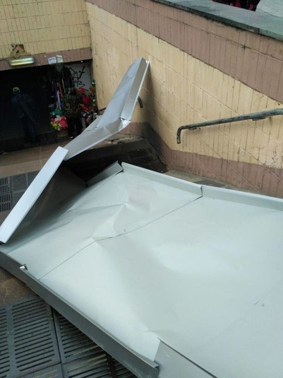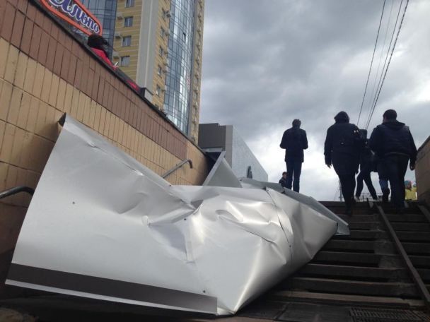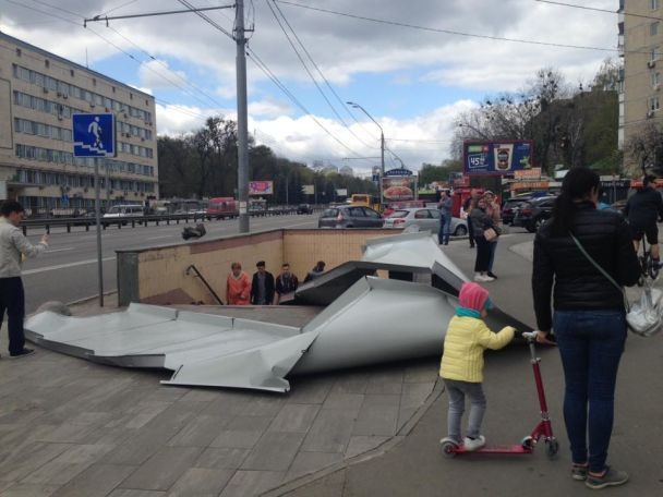У четвер, 19 квітня, у Києві із новозбудованого і нещодавно відкритого торгово-розважального центру SmartPlaza на проспекті Перемоги, 26 поблизу Київського політехнічного інституту вітром зірвало металевий лист перекриття.