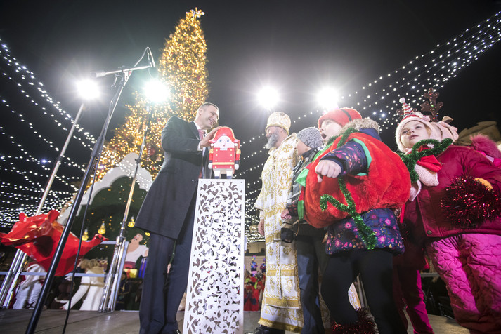 Мер Києва Віталій Кличко взяв участь у церемонії запалювання вогнів на головній новорічній ялинці на Софійській площі у столиці.