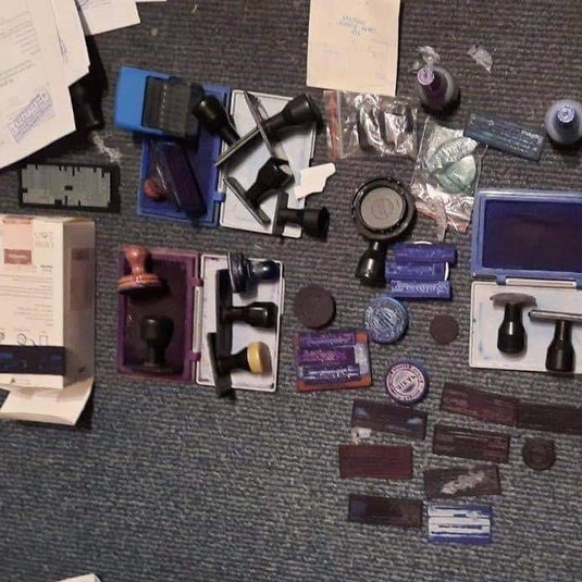 У подальшому під час обшуку за місцем проживання затриманого правоохоронці вилучили 43 печатки та кліше медичних закладів, 38 бланків особистих медичних книжок, 25 додатків до особистих медичних книжок та інші речові докази.