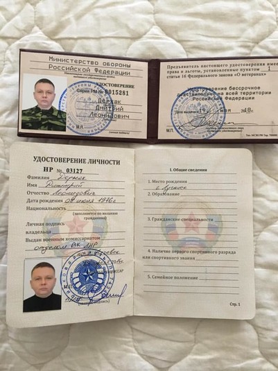 У Дмитра Держака виявлено посвідчення «ветерана бойових дій», видане міністерством оборони РФ