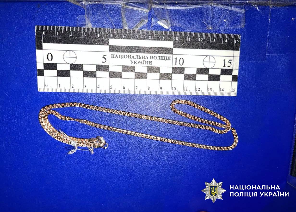 Правоохоронці затримали зловмисницю в порядку статті 208 КПК України одразу після вчинення чергової крадіжки золотого ланцюжка.