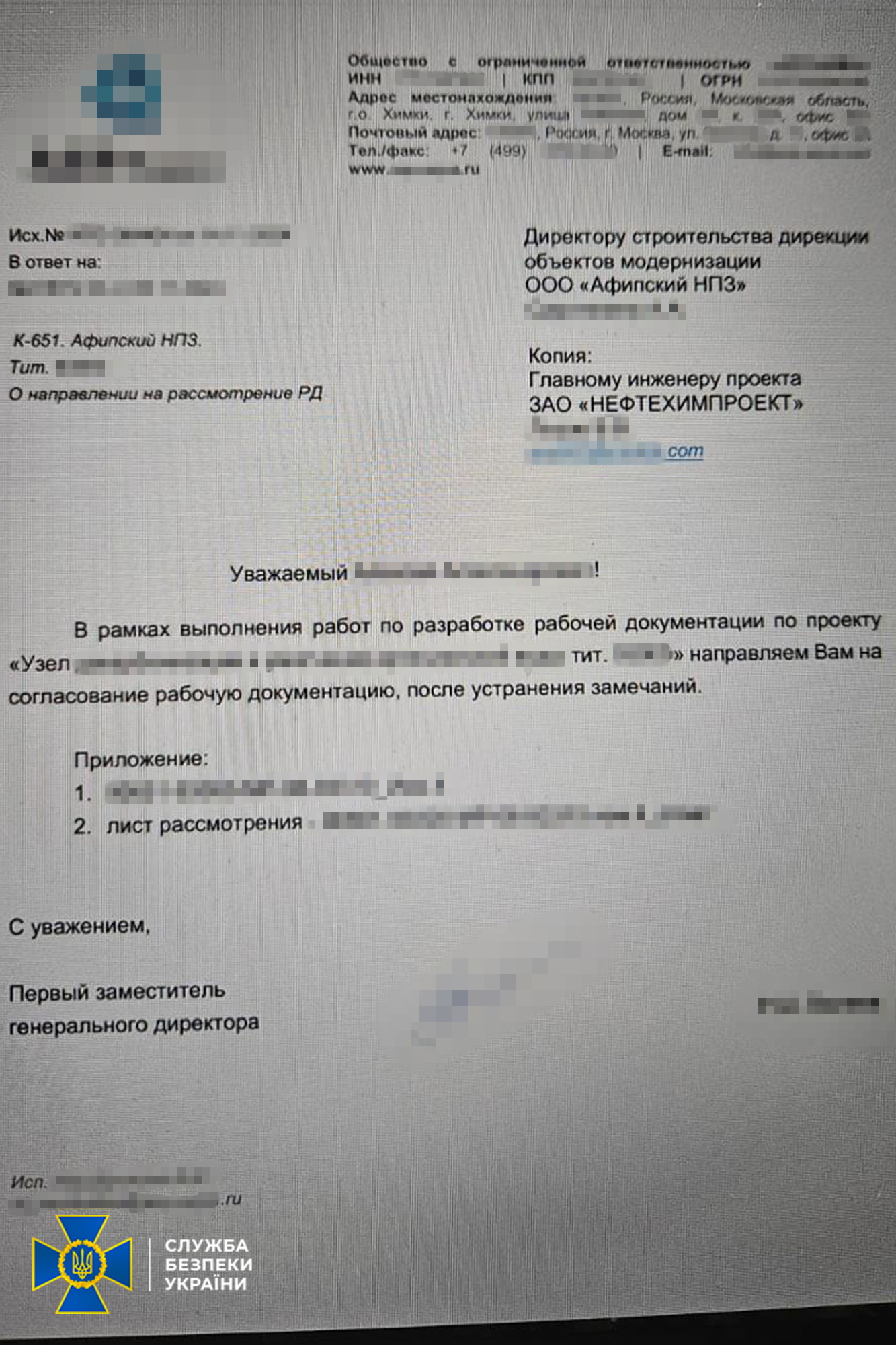 Служба безпеки України завадила спробі агресора отримати доступ до передових українських технологій у паливно-енергетичній сфері. Як повідомляє «Главком» із посиланням на пресслужбу відомства, у Києві затримано керівника відділу та двох інженерів проєктної компанії, які працювали на замовлення російського інжинірингового підприємства. Фігуранти допомагали ворогу відновлювати підсанкційні нафтопереробні заводи, що зазнали пошкоджень.