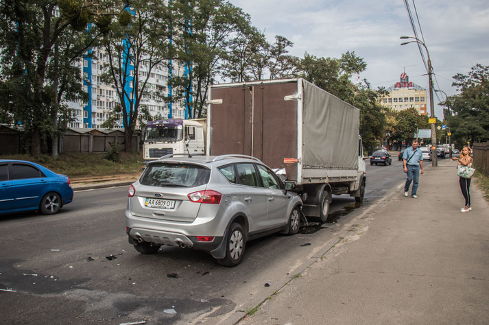 У середу, 5 вересня, на вулиці Дегтярівській 49г у Києві зіткнулися Ford Kuga і вантажівка Mercedes Benz.