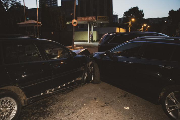 Першим під удар потрапив автомобіль Honda, який відлетіла в Audi, а той в Volkswagen. У цей момент в припаркованих машинах не було людей.