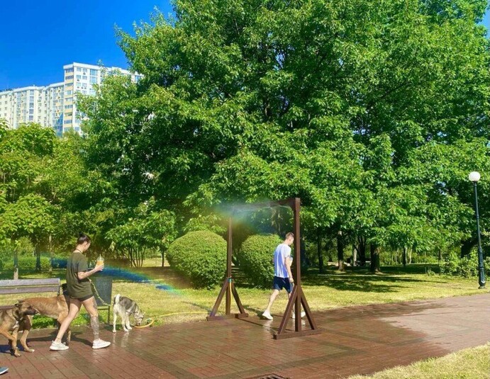У київських парках і скверах уже встановлені рамки, що розпилюють холодну воду, повідомляє «Київзеленбуд».