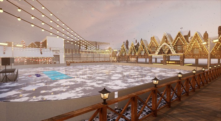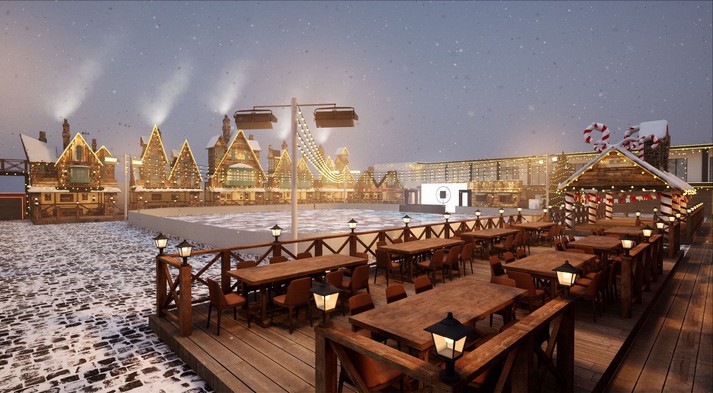 Басейн перетвориться на гігантську ковзанку площею 800 квадратних метрів. На додачу до неї тут з'являться й інші зимові розваги: гірка, карусель, фуд-корти зі святковими смаколиками і бари з вершковим пивом та глінтвейном.