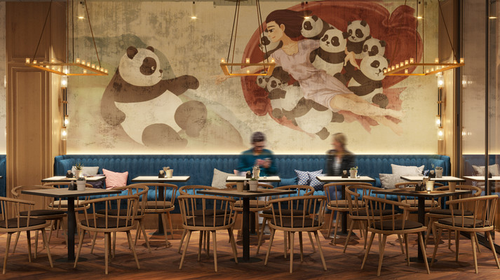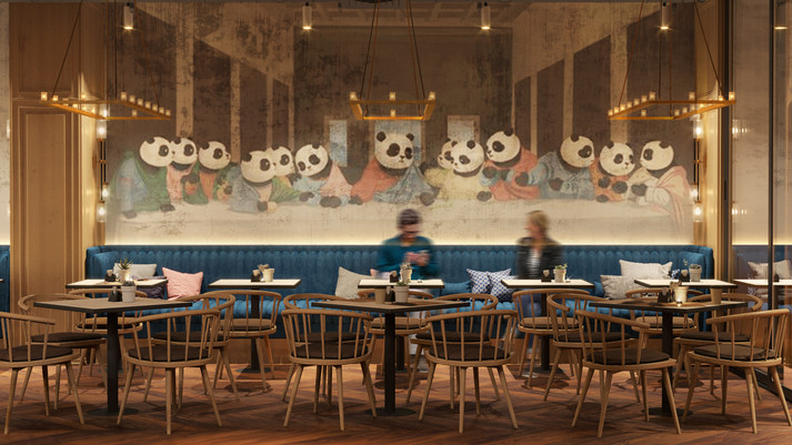 Автори проекту придумали нехитру систему збору коштів і популяризації ідеї. У процесі зустрічей і креативних брейнстормів виникла ідея додати живопису в інтер'єр і зобразити всесвітньо відомі твори мистецтва. На стінах закладу будуть репродукції епохальних художників, серед яких: Сандро Боттічеллі «Народження Венери», Леонардо да Вінчі «Посмішка Мони Лізи» і «Таємна Вечеря». Але ролі Мони Лізи, апостолів і Богині Венери дістануться наймилішим створінням - пандам. Саме ці ведмедики у багатьох асоціюються з безпосередністю, добротою і ніжністю. Команда з партнерами випустила милу плюшеву панду. Кожний охочий може придбати іграшку Big Hug – талісман майбутнього ресторану. На даний момент за допомогою продажу плюшевих панд зібрано 5 700 євро.