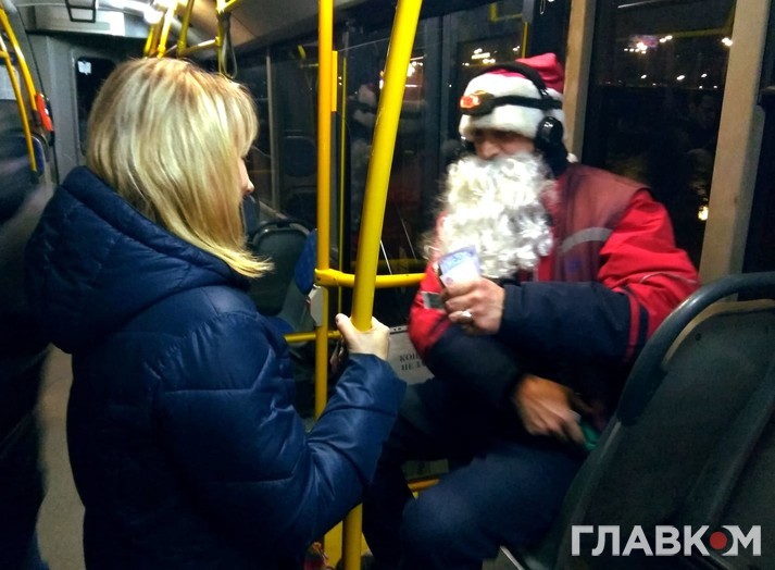 У київському маршрутному автобусі №48 працює кондуктор в костюмі Діда Мороза.
