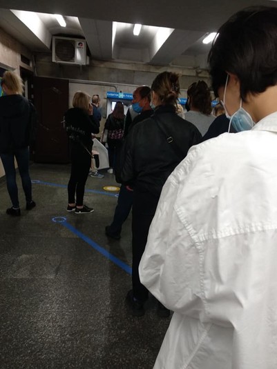 На станціях утворилися величезні черги. Разовий QR-квиток на касі купити неможливо, а черги в автомати Kyiv Smart Card розтяглися аж на вулицю, наприклад, на станції «Дарниця».