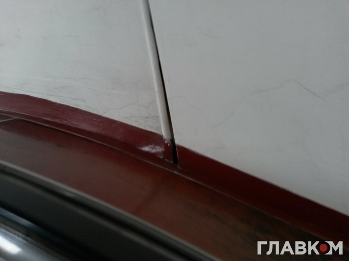 Протікання спостерігається вже давно, лист заліза і труба, які було пристосовано для збирання дощової води пофарбовані в кольори стелі і стіни.