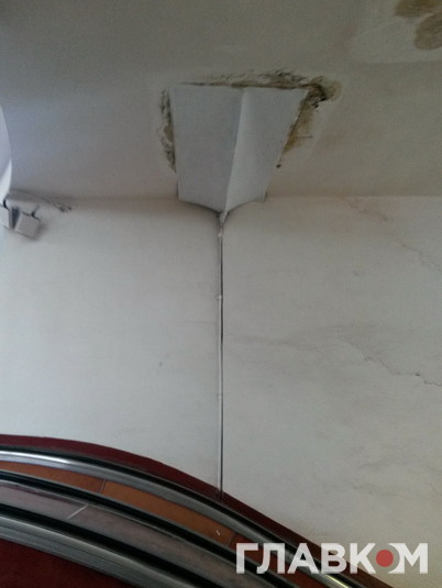 На столичній станції метро «Хрещатик» тече дах. Цю картину можна побачити на верхньому виході станції, з якого пасажири потрапляють на вулицю Інститутську.