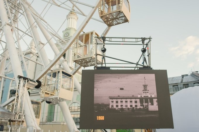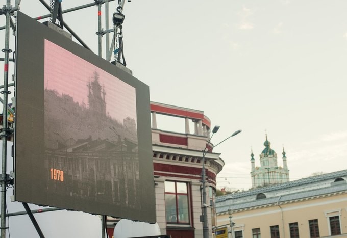 У Києві стартував спеціальний проект Київського тижня критики «Машина часу». На Майдані Незалежності, Контрактовій та Софійській площах встановлені екрани, на яких можна побачити, як виглядали ці місця у різні десятиріччя.