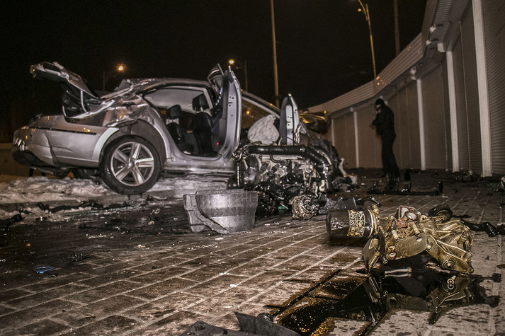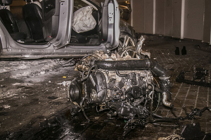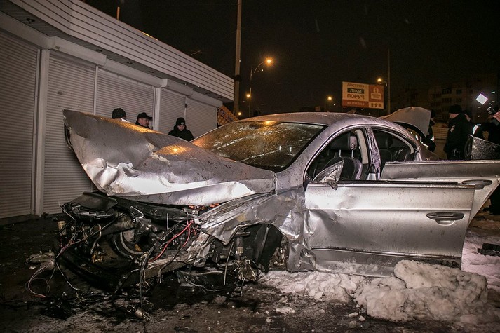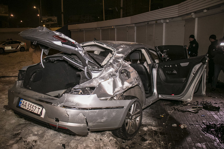 У результаті події автомобіль отримав серйозні пошкодження кузова, двигун машини вилетів, а ліве колесо відірвало.