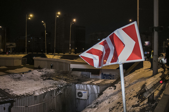 Вночі 15 лютого, на столичній Троєщині, на перетині вулиці Теодора Драйзера і проспекту Володимира Маяковського автомобіль Volkswagen вилетів із дороги і впав у підземний перехід.