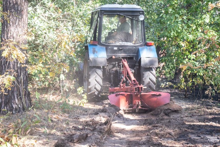 На даний момент відділення рятувальників продовжує розгрібання чагарників.