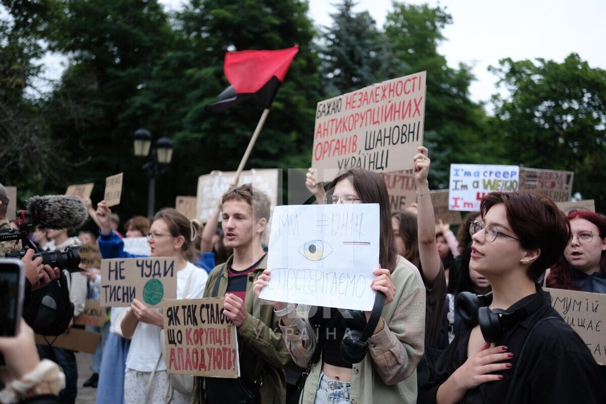 Нагадаємо, у середу 30 липня на площі біля театру ім. Івана Франка в Києві знову тривала акція протесту проти закону, який фактично обмежує повноваження НАБУ і САП. Мітингувальники вийшли на протест із вимогою до депутатів Верховної Ради проголосувати за законопроєкт №13533, який вніс президент Володимир Зеленський. Голосування має відбутися в четвер 31 липня.