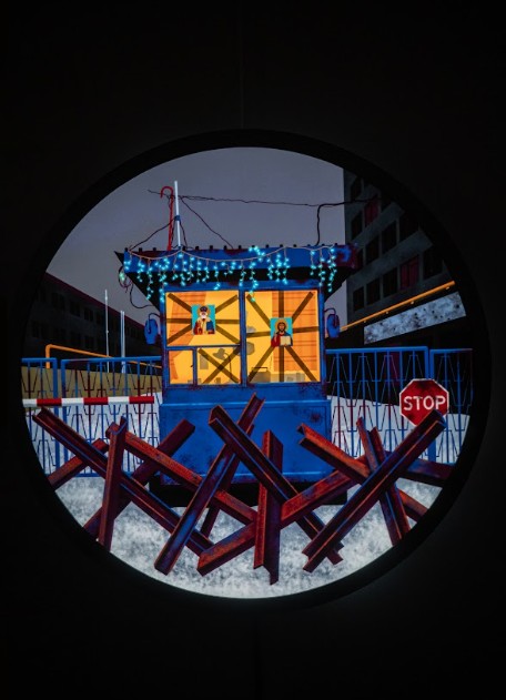 На картині Івана Михайлова «Прохідна» шлях перекривають протитанкові «їжаки». Яскраві вогники гірлянд поруч із атрибутами війни – це не просто художній прийом, а точне відображення нашого теперішнього світосприйняття, де свято й загроза співіснують в одному кадрі.