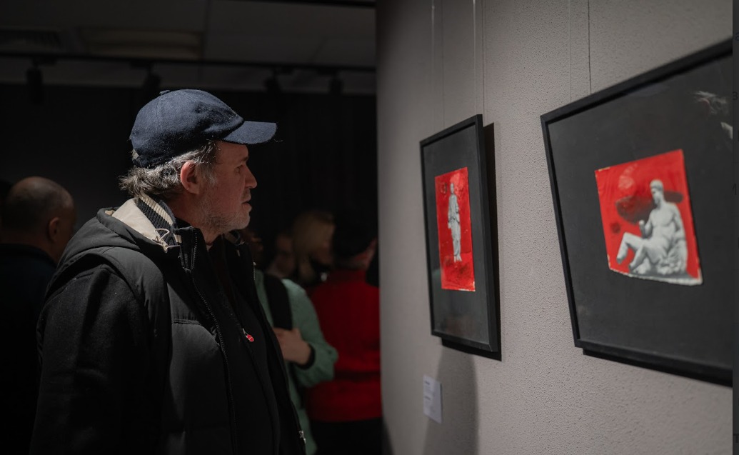 Михайло Скоп – художник, мистецтвознавець, учасник культурних сил, військовослужбовець і учасник цієї виставки, розповів, що 2014-го року працює як художник-волонтер.