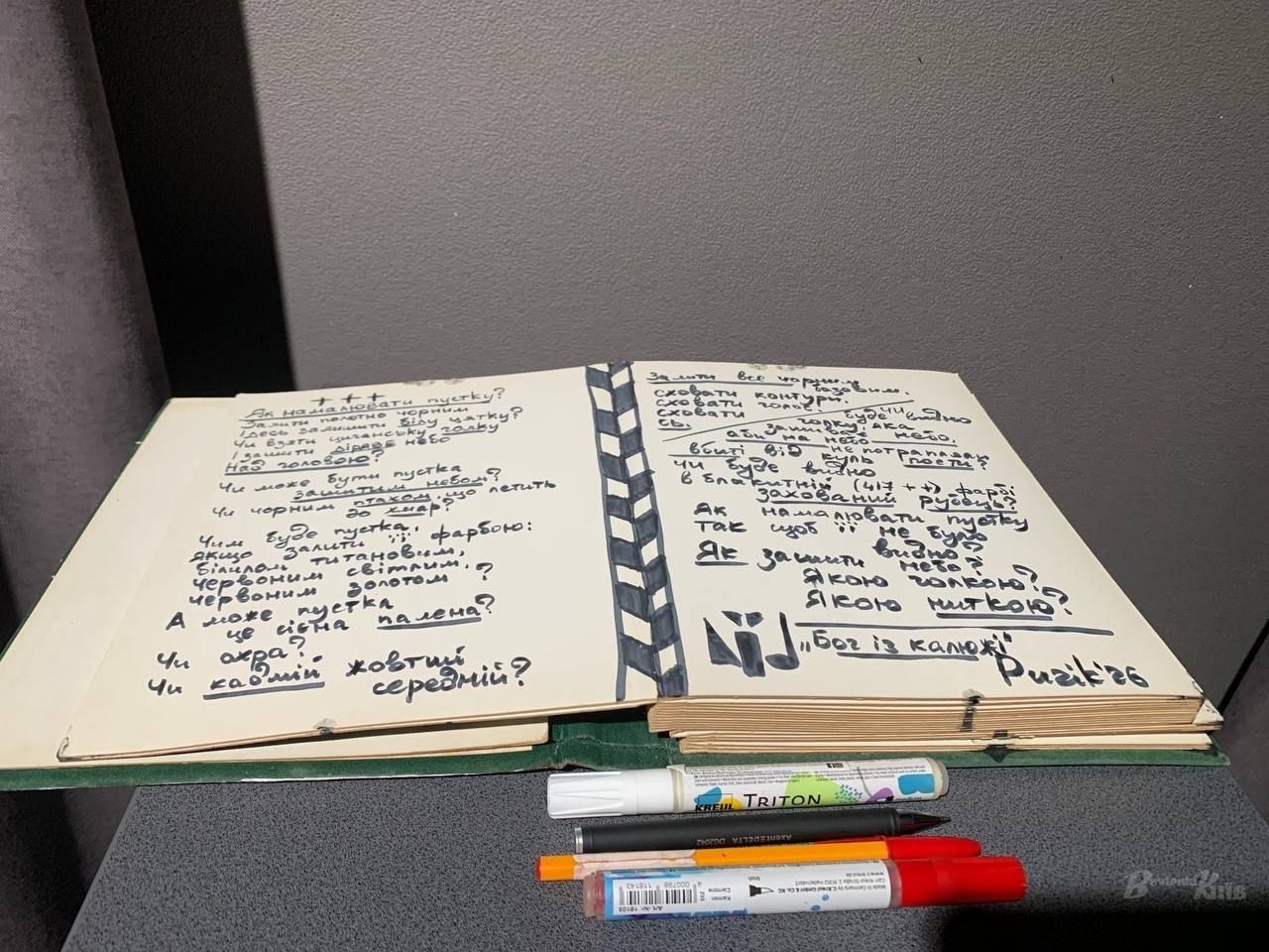 «У всіх моїх роботах так чи інакше є певний, актуальний посил, актуальний наратив, тобто, зокрема, це центральна тема – війна. З 22-го року я дуже активно займаюся плакатним мистецтвом. Під моїм псевдо мої плакати можна побачити десь, наприклад, в Америці, в Європі, тобто вони досить часто циркулюють. І саме отаким чином я працюю, щоб комунікувати з тими, хто за кордоном, з тими, хто не дуже розуміє, що відбувається і для кого це все політика, для кого це все якийсь, не знаю, локальний конфлікт. За допомогою образів, за допомогою візуальної мови я роблю так, щоб люди міняли свою думку», – пояснює мету своєї роботи художник-військовий.