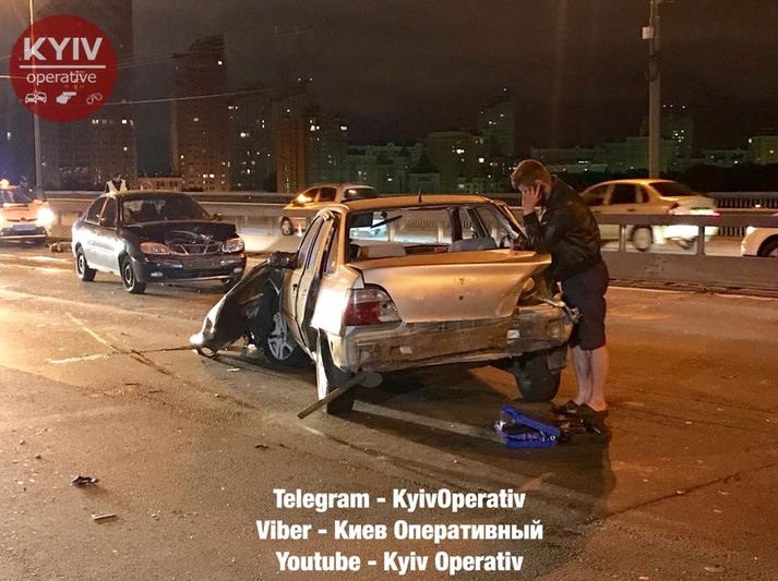 Так, в результаті аварії постраждав пасажир автомобіля Nexia. Його госпіталізували в лікарню зі струсом мозку. Через ДТП у бік Троєщини утворилася пробка.
